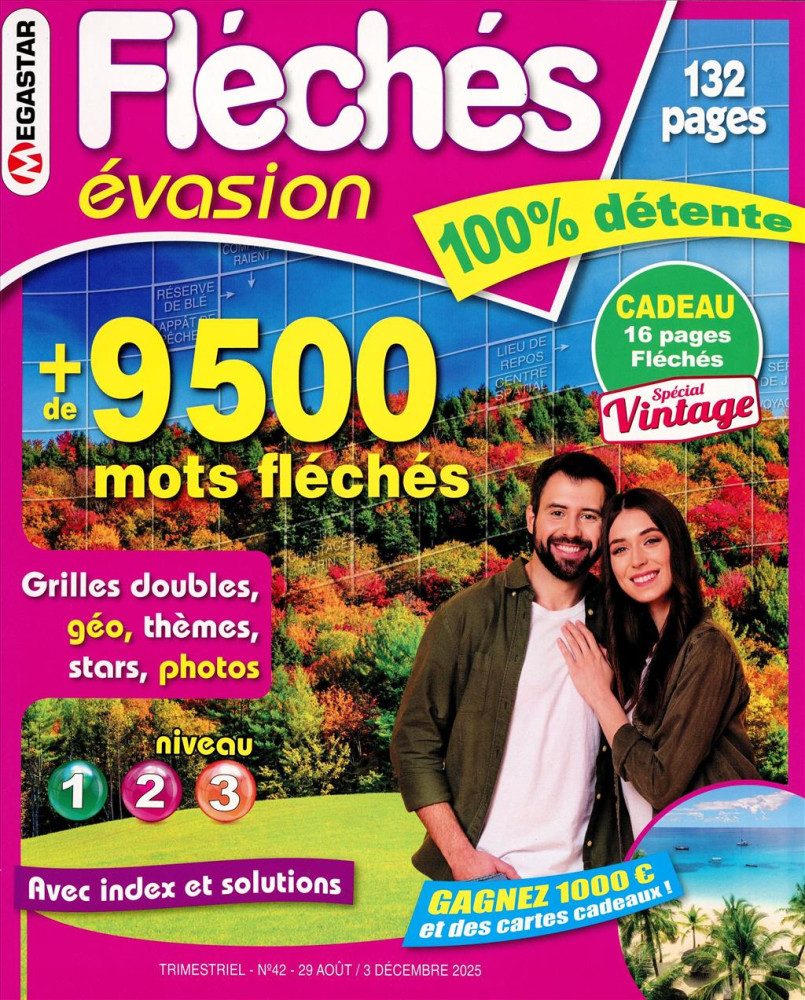 Fléchés évasion vous assure des heures de jeu avec des grilles de niveau 1 à 3, classiques, à photos, à énigmes, mais aussi des grilles doubles, géo ou stars, des fléchés casés et des thèmes.
